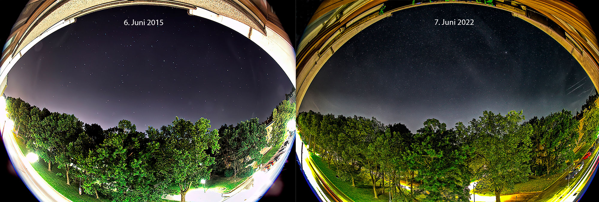 Viel Licht kommt aber nicht nur dort an wo es beabsichtigt ist, sondern reflektiert in den Nachthimmel über den Ortschaften und Städten. Neben dem durchaus auch wirtschaftlichen Schaden, der durch dieses verlorene Licht in den Kassen der Kommunen entsteht, führt diese Lichtverschmutzung dazu, dass sich der Himmel über bewohntem Gebiet mehr und mehr aufhellt.